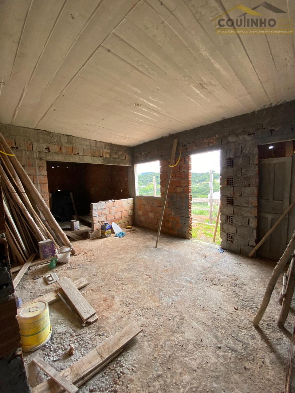 Casa possui 3 quartos, banheiros, sala, cozinha, garagem e área de lavar a serem acabados.